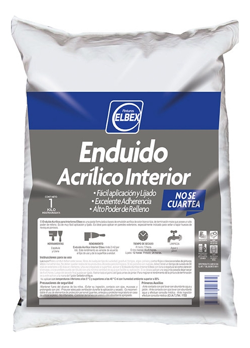 Enduido formulado para aplicar sobre superficies interiores de yeso, concreto o mampostería, nuevas o pintadas, que presenten irregularidades o fisuras de pequeño tamaño, de modo de obtener una terminación homogénea, sin anfractuosidades. No es indicado para rellenar pozos o grietas, ni para desniveles mayores que 1 mm. Siempre requiere una pintura de terminación.
