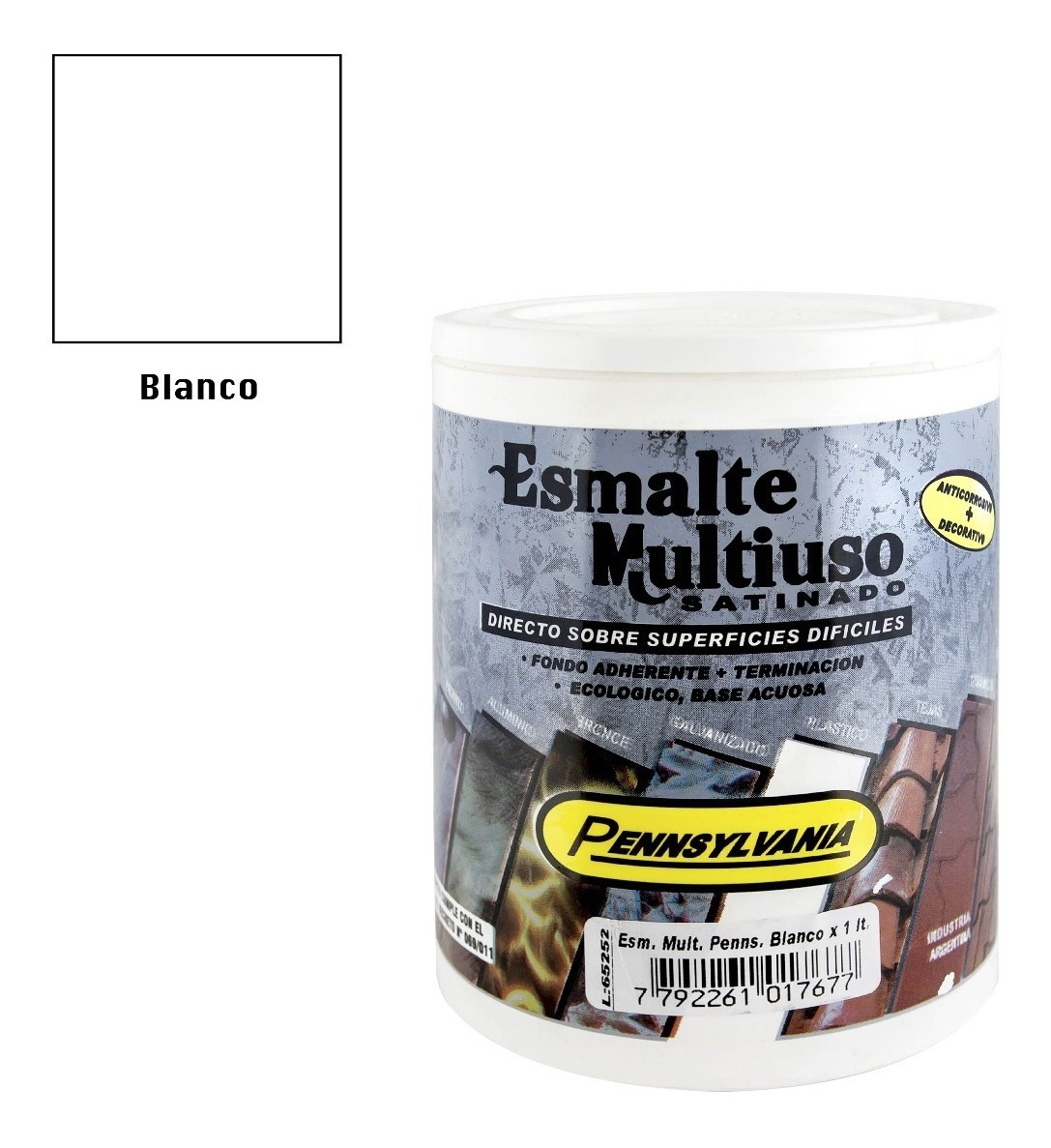 Esmalte satinado ecológico, de doble función, es anticorrosivo y decorativo. Es fondo adherente + terminación. Se aplica directamente sobre galvanizado, hierro, aluminio, bronce, teja, cerámico no esmaltado, fibrocemento, plástico, etc.. Uso interior y exterior