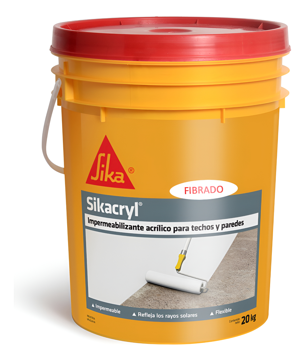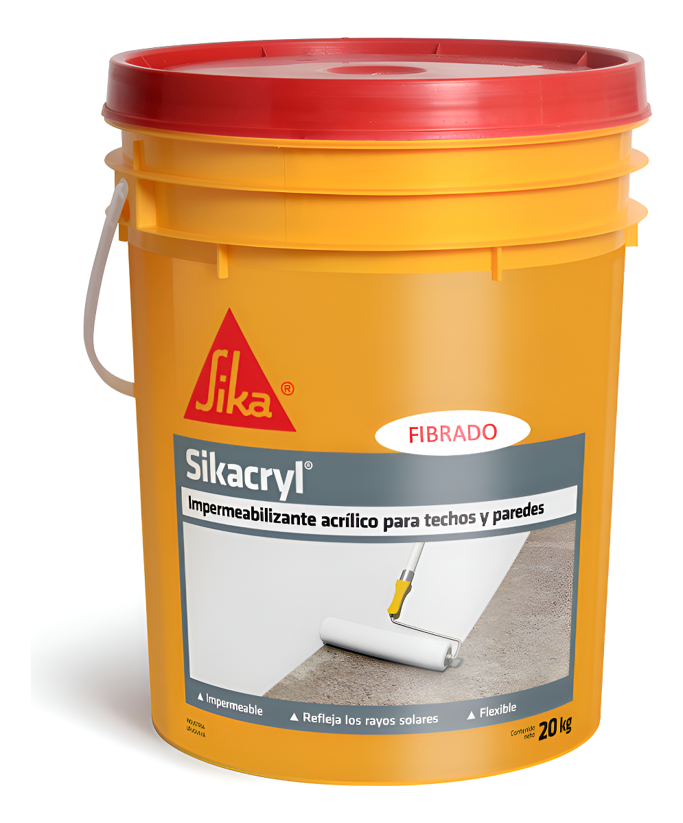 Acrílico blanco con incorporación de fibras sintéticas cortas, para protección de superficies exteriores Sikacryl® Fibrado es una dispersión acrílica en agua con incorporación de fibras, aplicable a modo de pintura, de color blanco reflectivo. Una vez seca, conforma una membrana continua y sin poros. Muy buena adherencia a los soportes comunes a impermeabilizar, tales como hormigones, revoques, ladrillos y tejuelas. Presenta mejor comportamiento en superficies con microfisuras. Conforma una membrana armada.