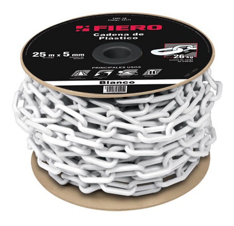 Cadena plástica blanca 5mm-Rollo 25mt.»FIERO» CAPL-5B x