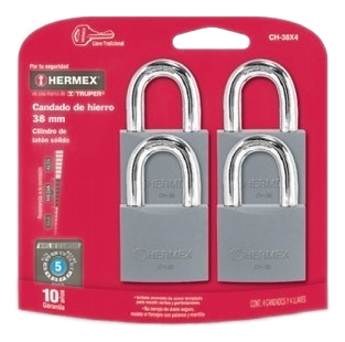 Candado ho.38mm c/igual llave(blis.x4)»HERMEX» CH38x4 x