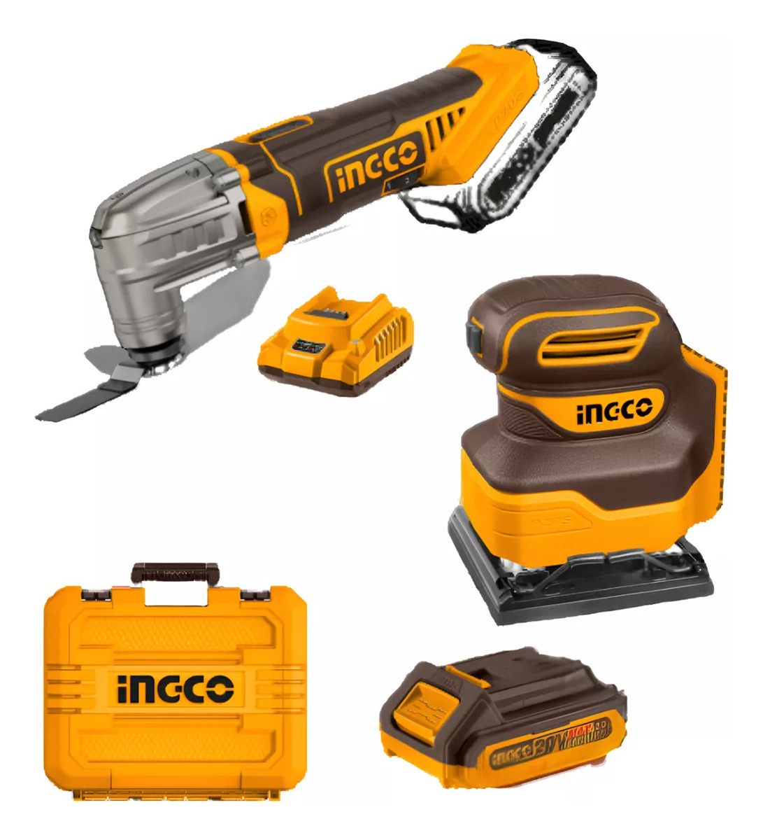 COMBO LIJADORA ORBITAL 20V P20S + HERRAMIENTA MULTIFUNCION 20V + 2X BAT 2AH + VALIJA