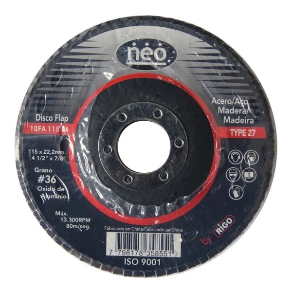 Disco Flap De Lijas 115mm Neo 10fa115 Acero Madera N°36