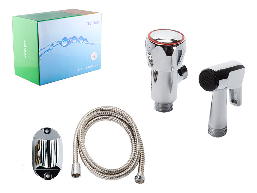 Roseta de lluvia con gatillo Llave de paso de 1/2» cromada Manguera flexible cromada de 1.5 mt Soporte de pared para roseta