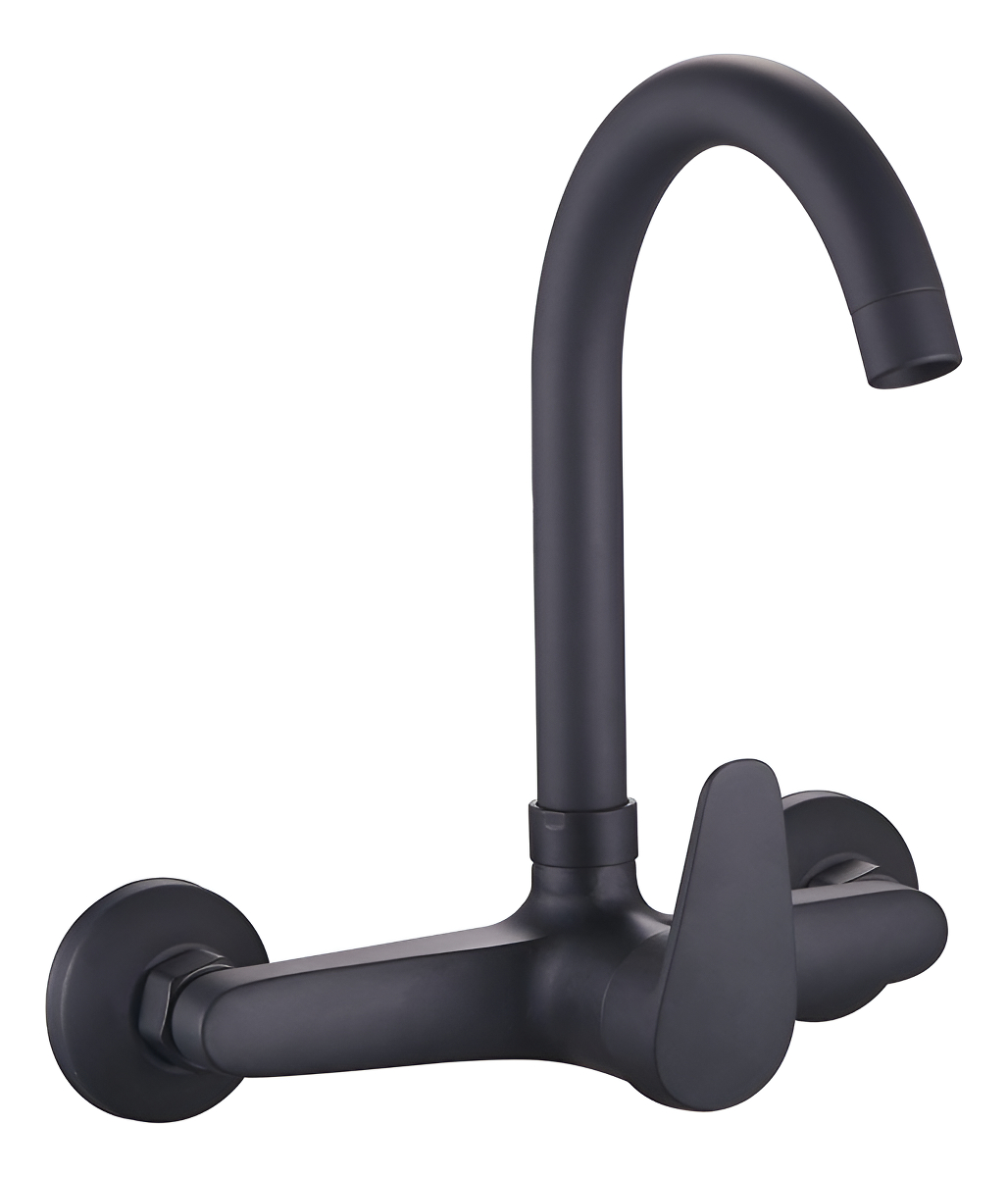 Monocomando Cocina De Pared 20cm 8» Cartucho 35mm Negro Mate Goldex