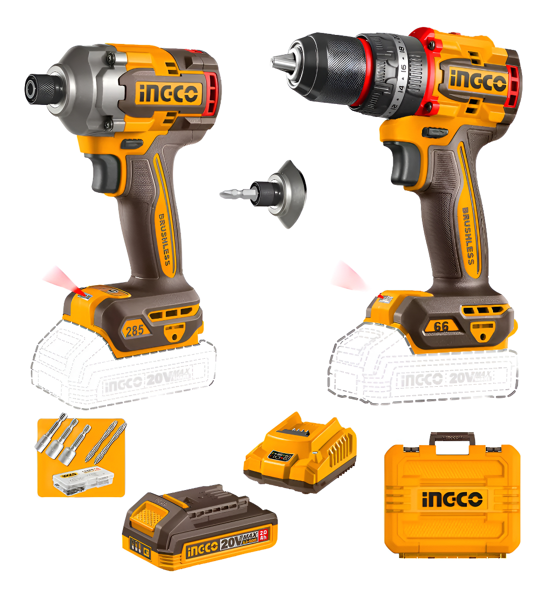COMBO TALADRO ATORN C PERCUTOR 66NM + ATORNILLADOR DE IMPACTO 20V P20S BRUSHLESS C/2 BAT + CARGADOR + VALIJA + SET ACCESORIOS