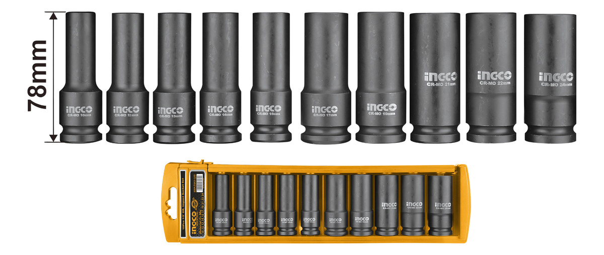 Juego de llaves de dados de impacto profundo DR. 1/2 «, 10 piezas