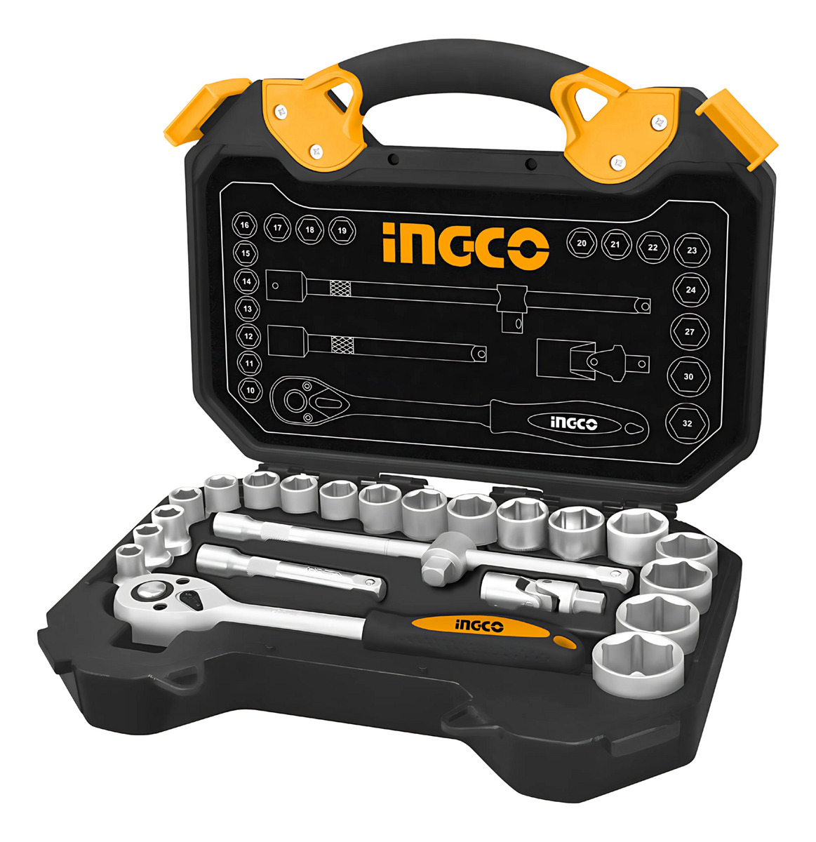 JUEGO DADOS TUBO LLAVE CRIQUE 1/2 METR. Y PULG. 25 PZS INGCO HKTS12251