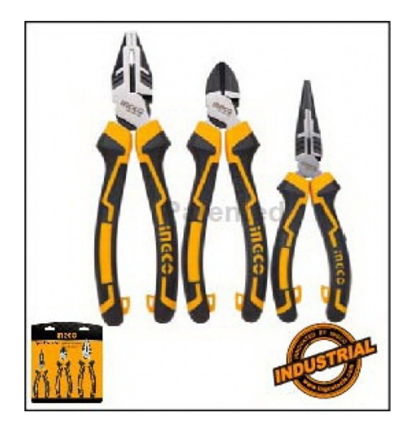 JUEGO 3 PINZAS UNIVERSAL ALICATE DIAGONAL PINZA PTA FINA INGCO INDUSTRIAL HKHLPS2831