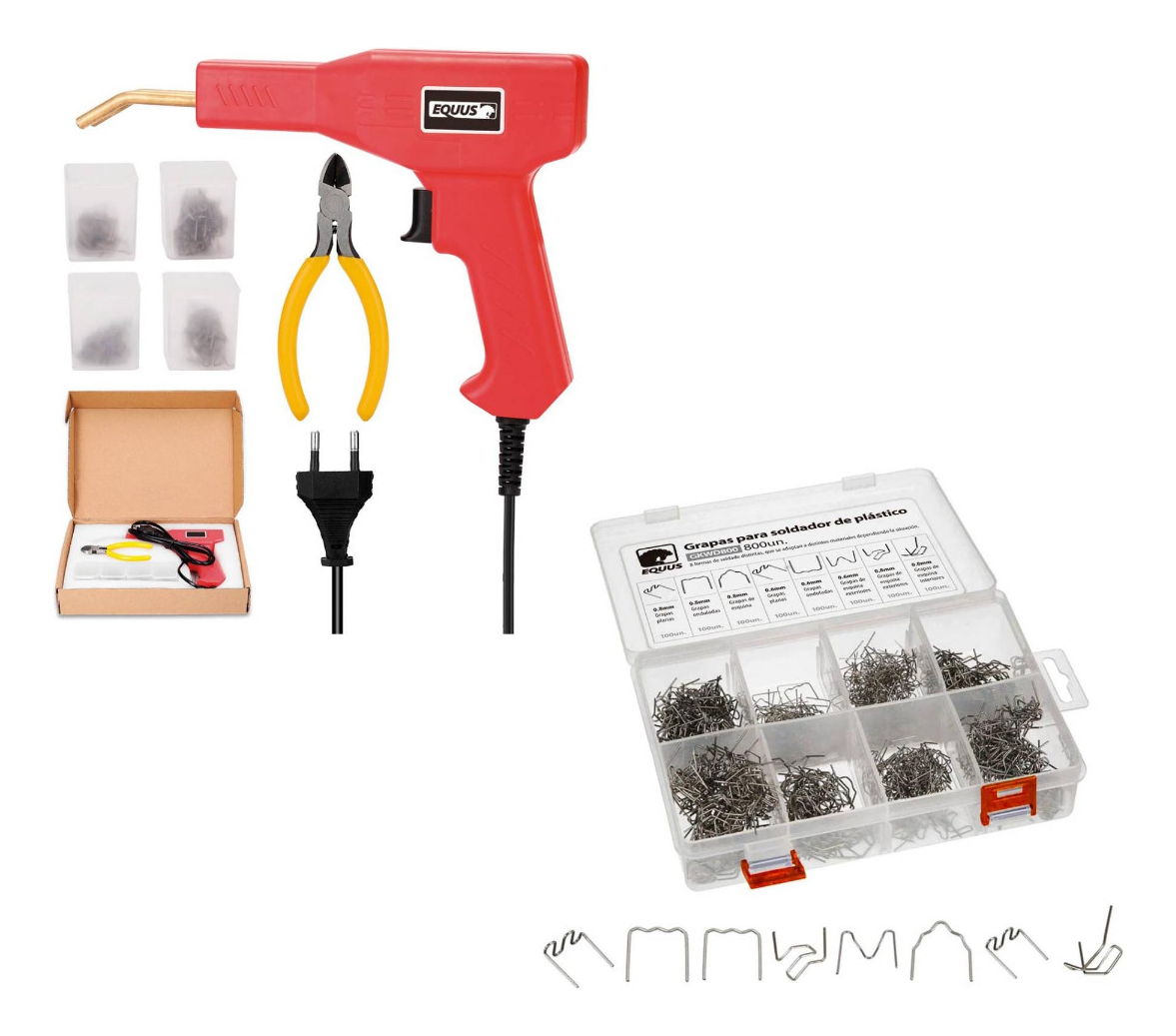 Incluye: 1 alicate, 1 trincheta y 200 grampas (4 modelos diferentes, 50 de cada uno)