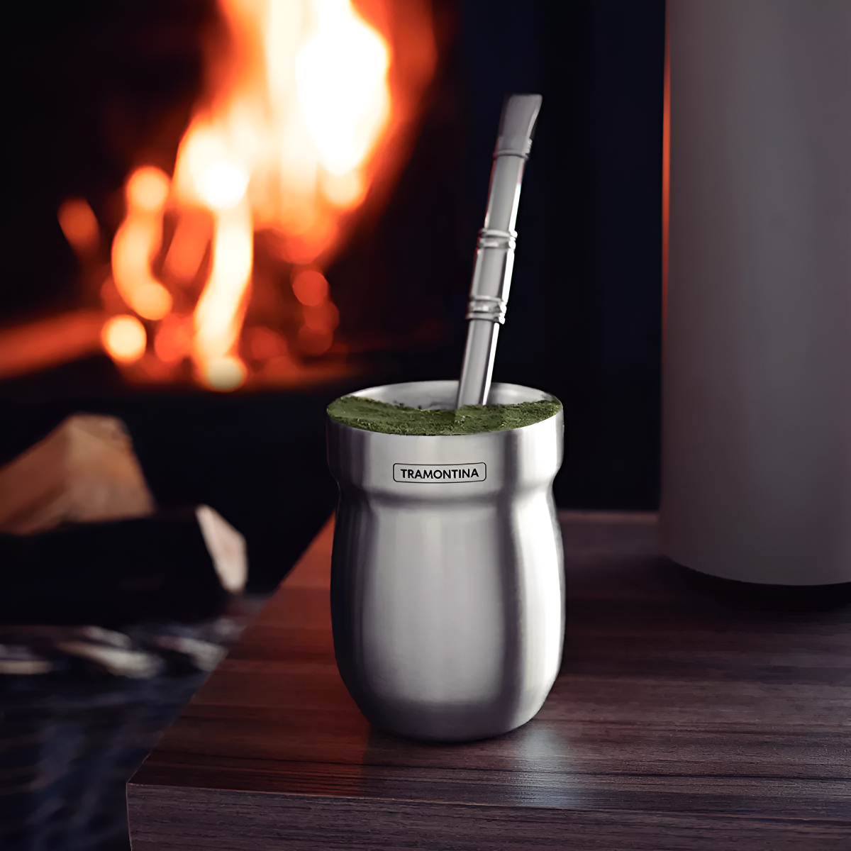 Mate en acero inoxidable. Estos mates están desarrollados para mantener la temperatura ideal por más tiempo, poseen una doble pared de acero inoxidable con aislamiento al vacío. Un recipiente sin BPA que es fácil de limpiar, no mancha, no se rompe, no retiene olores y no transmite la temperatura a tu mano. Capacidad: 240ml.