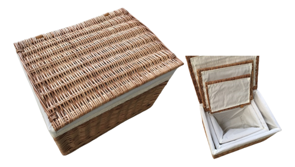Transforma tu espacio con el Set de Canastos de Mimbre, una opción ideal para quienes buscan organización y estilo en su hogar. Fabricados en mimbre, estos canastos presentan una construcción robusta y elegante que complementa cualquier decoración. Su forma rectangular permite un uso eficiente del espacio, ya sea en la sala, el baño o el dormitorio.