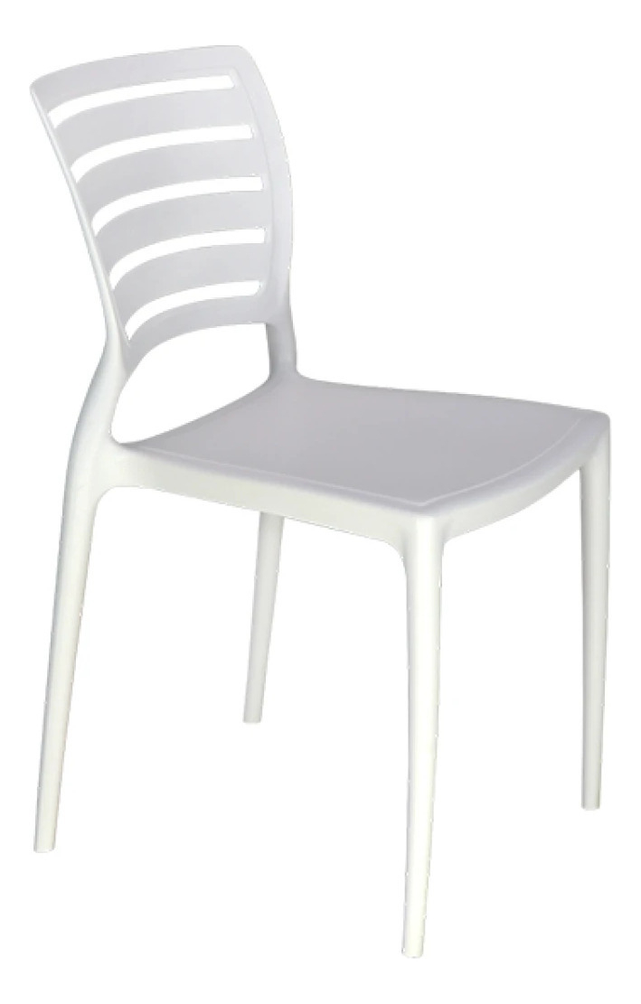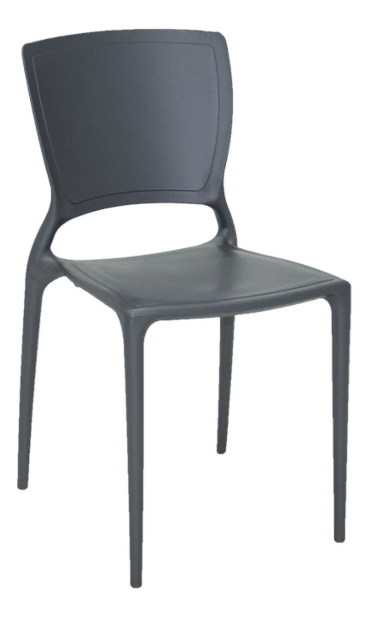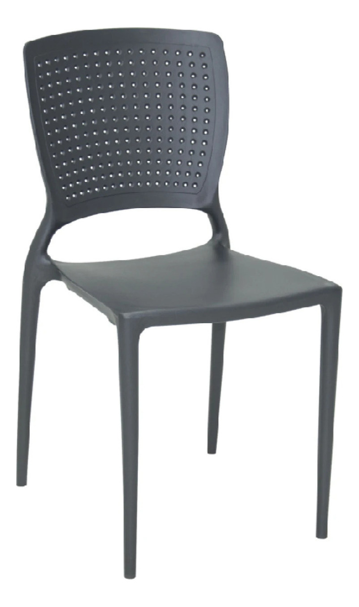 Fabricada en polipropileno y fibra de vidrio. Posee un diseño moderno, es liviana y resistente. Peso máximo recomendable de carga 182kg. Se pueden apilar hasta 9 unidades. Dimensiones aproximadas: ancho 440mm, altura 845mm (incluido respaldo), profundidad 525mm. Altura del asiento: 450mm. Recomendaciones: Respetar el límite máximo de peso. Cuando no se utilizan mantenerlas protegidas del sol, ya que le puede provocar manchas o pérdida del color. Limpiar con agua y jabón neutro.