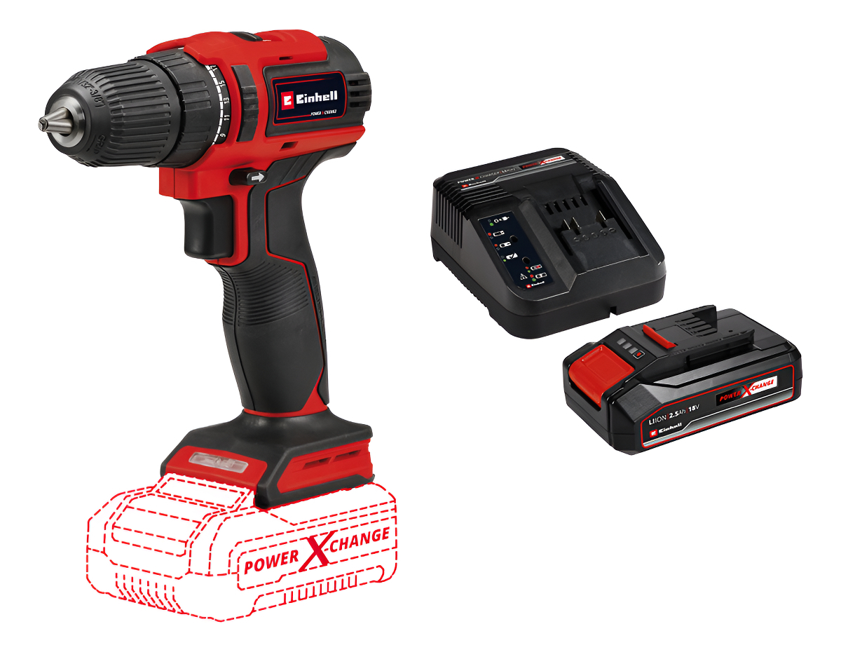 El taladro atornillador con batería Einhell TE-CD 18/40 Li BL – Solo permite la potente perforación y el rápido atornillado y aplica un par máximo de 40 Nm gracias a la robusta caja de cambios de dos velocidades. Gracias a la más moderna tecnología de baterías de la flexible serie Power X-Change, los trabajos de perforación, por ejemplo en madera, no suponen ningún problema para este taladro atornillador con batería. El motor sin escobillas no sufre desgaste mecánico y, por tanto, ofrece más potencia y una vida útil más prolongada que los motores convencionales de escobillas de carbón. Este pequeño y ligero taladro atornillador con batería es fácil de manejar y, gracias a su diseño ergonómico y a su empuñadura Softgrip, ofrece una sujeción firme y segura para trabajar sin fatiga. La unidad electrónica de velocidad de giro aporta un trabajo adaptado al material y aplicación con toda la fuerza. El taladro atornillador con batería está equipado con un portabrocas de cambio rápido de 10 mm de alta calidad con un solo casquillo y con iluminación LED para trabajar de forma óptima en zonas oscuras. Las baterías con celdas de iones de litio de alta calidad pueden utilizarse con todos los miembros de la familia Power X-Change. Las baterías PXC siempre están listas para el uso gracias a la tecnología de iones de litio sin autodescarga. // Incluye Starter kit: Cargador y batería 2,5 Ah